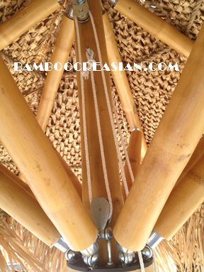 Indoors . Bamboo poles natural sanded are